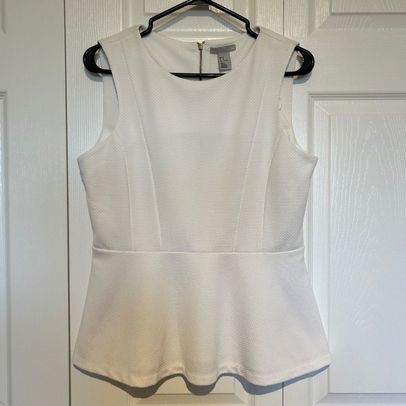 Selling a textured white sleeveless peplum top with a zipper in the back. Size M from H&M. Excellent condition, only worn once or twice.