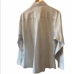 White Pinstripe Collared Fitted Button Up Long Sleeve Cuffed Dress Shirt XL