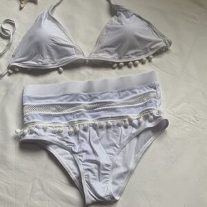 ☀️ White Pom Pom Triangle Halter Bikini Top☀️