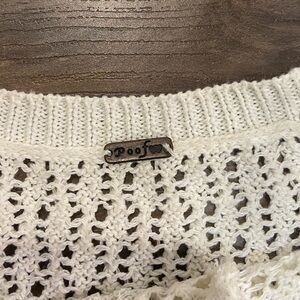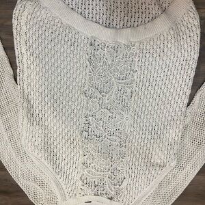 Embrace comfort and style with this chic white knit sweater. Perfect for layering or wearing on its own.