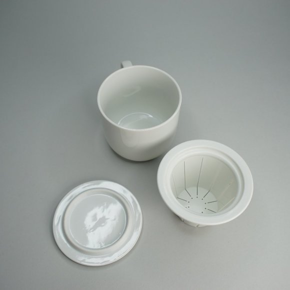 White Porcelain Tea Mug + Lid + Infuser Strainer
