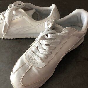 White leather Puma Romas in very good condition.. Size 11, clean.
