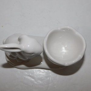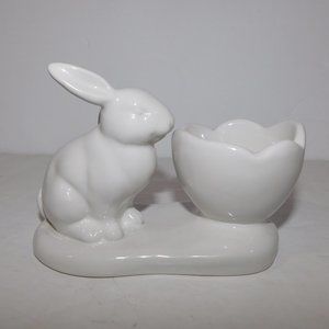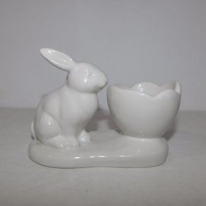 This super cute White Bunny Rabbit Ceramic Egg Cup Holder is in Excellent clean condition. Perfect for holding soft boiled Egg for eating or as and Easter table display with fake egg or colored hard boiled eggs. Measures 3.5" tall and 5" long and 2.5" wide