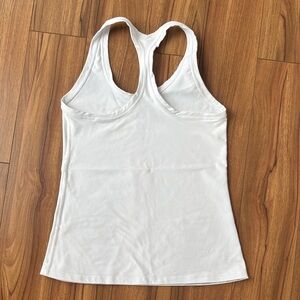 This sleek white racerback tank top is perfect for any casual outing. Enjoy comfort and style with this versatile piece.