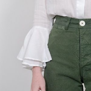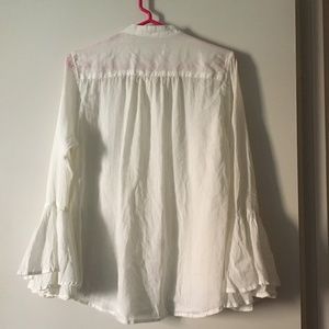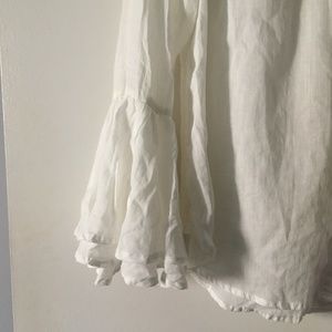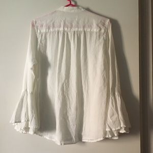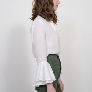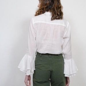 White Ramie + Cotton Bell Sleeve Victorian Boho Blouse S