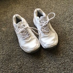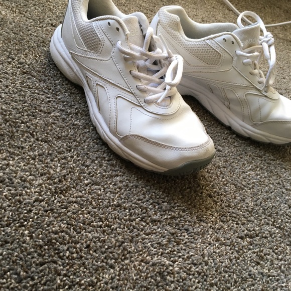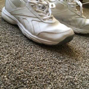 Hardly ever worn, white Reebok sneakers good for casual wear, walking, or for the gym. Super cushy memory foam on the inside.