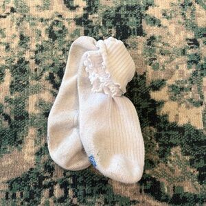 White ribbed ankle socks with a delicate ruffle edge.