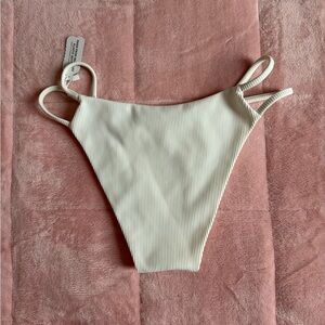Stylish white ribbed bikini bottom with side ties. Perfect for a beach day.
