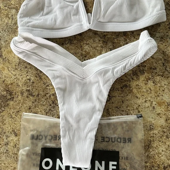ONEONE white ribbed bikini. Cheeky bottom. Only worn a couple times. Excellent condition.