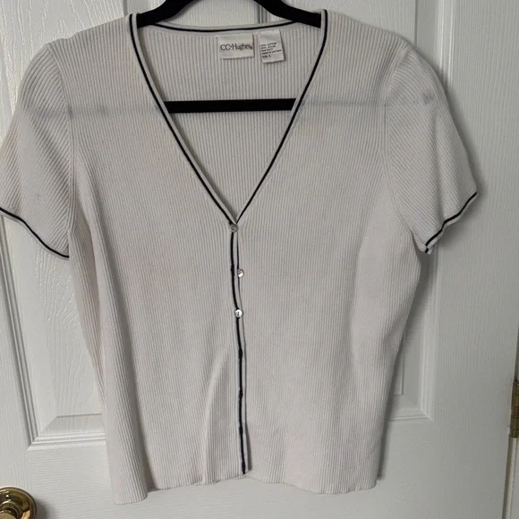 White Ribbed Button Down Women's Top