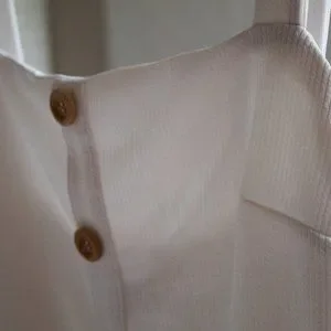 White Ribbed Dress with Buttons
