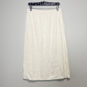 A classic off-white midi skirt with a subtle texture and a slim A-line silhouette.