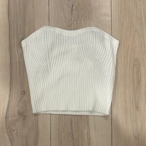 Elevate your style with this chic white ribbed knit strapless top. Perfect for any occasion, this versatile piece offers a sleek and modern look.