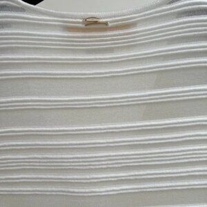 Beautiful top with shimmery, sheer stripes and snap closure. Stretchy.