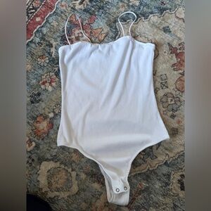 Ribbed tank top body suit | Adjustable spaghetti straps | White 🤍 | Women’s size small | Great condition | Thicker material so it’s hardly see through for a white shirt |