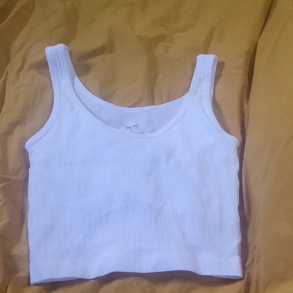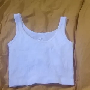 Elevate your wardrobe with this classic white ribbed tank top. Perfect for layering or wearing on its own, this versatile piece is a must-have for any closet. form fitting with built in bra, never worn!