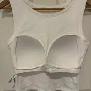 white tank top with built-in breast pads. Ideal for layering or wearing alone. Soft and comfortable fabric. Worn once.