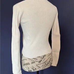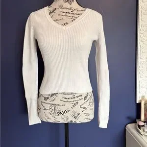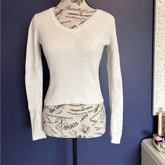 Stylish white ribbed sweater with a flattering V-neck design. Perfect for any occasion.