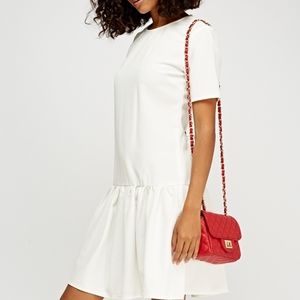 White Ruched Hem Textured Dress