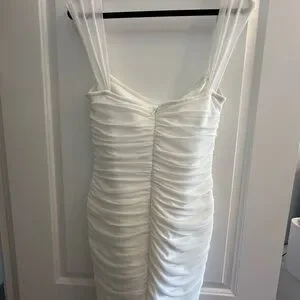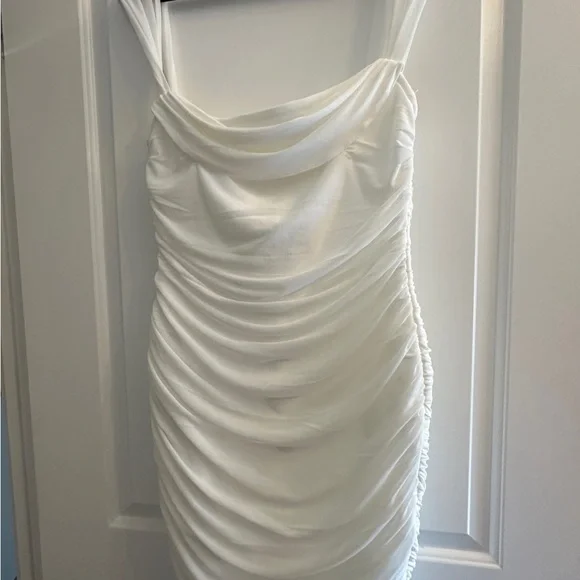 This elegant white ruched dress is perfect for any occasion. Bought for bridal shower but never worn.