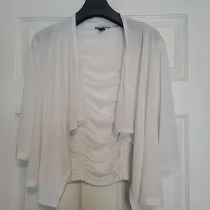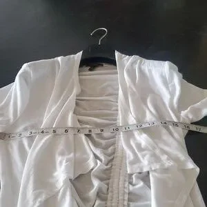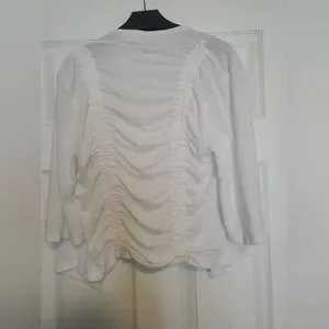 Details:• Brand: Cupio• Size: Medium• Color: White• Open front style• 3/4 sleeves• Ruched front and back design• Lightweight & comfortable stretch fabric• Made in China