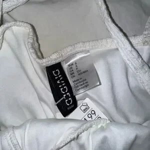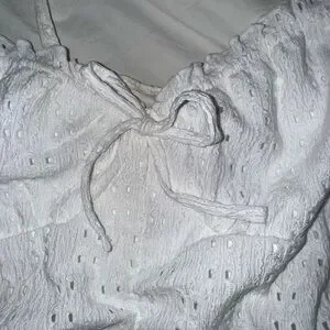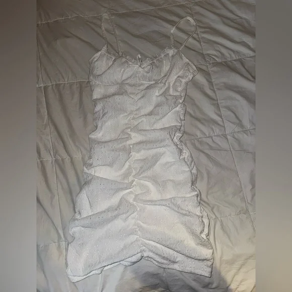 Elegant white ruched dress with delicate straps. Perfect for any occasion.
