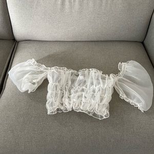 White Ruffle Mesh Crop