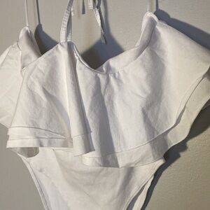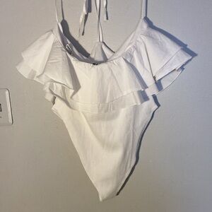 White Ruffle Off-Shoulder Bodysuit
