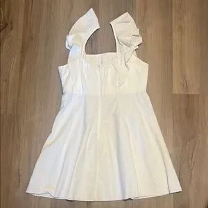 Chic white dress with ruffle sleeves and button details. Perfect for any occasion.