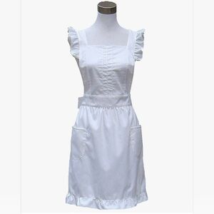 Charming white apron with ruffled details. Perfect for cooking and baking.