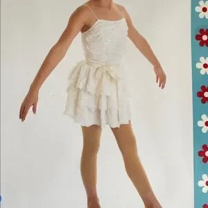 Elegant white ruffled ballet dress with adjustable spaghetti straps. Perfect for dance performances.