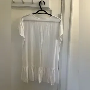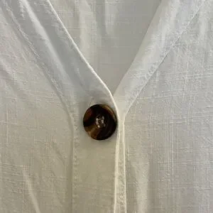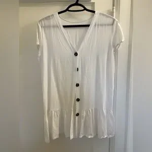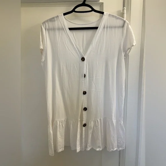 Embrace a chic beachside look with this white swim coverup, featuring a stylish button-down design and elegant ruffled details. Perfect for adding a touch of sophistication to your swimwear ensemble.