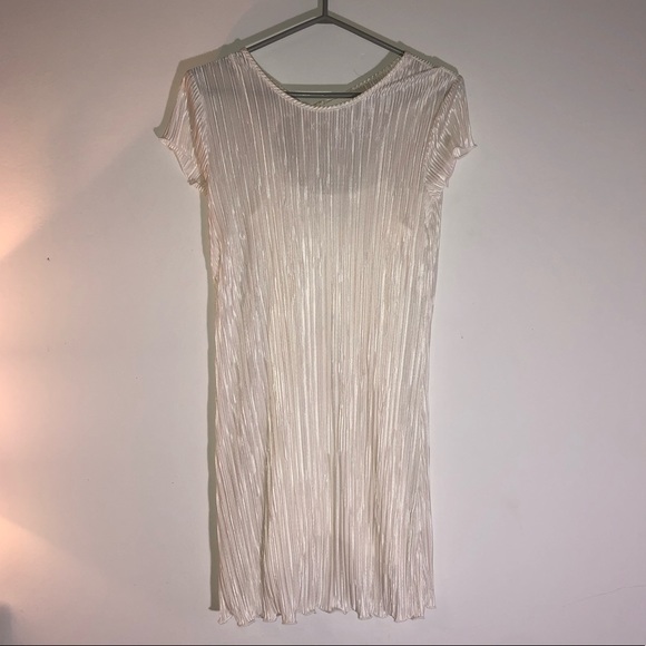 This dress has a slip dress attached underneath. The top layer is a short sleeve, slightly transparent ruffled dress. It will be so cute to wear in summer either dressed up or down to be casual 🤩 I am 5’8 and this dress is too short for me.
