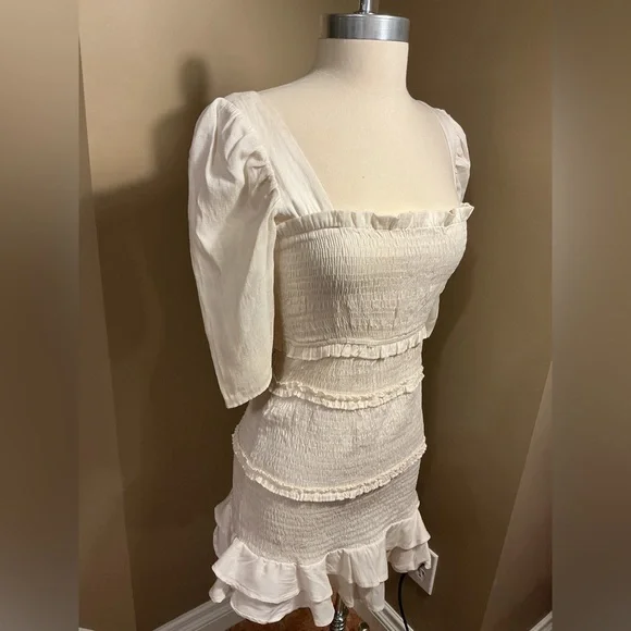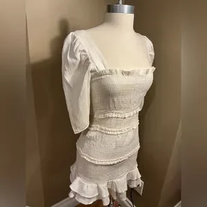 White Ruffled Smocked Dress