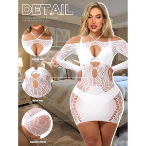 White Sexy Halter Mesh Bodycon Dress for Women Midi Lingerie Nightwear