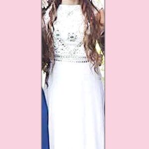 White Sheer Exterior Embellished Wedding/Prom Dress Size Small