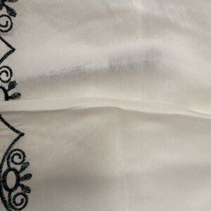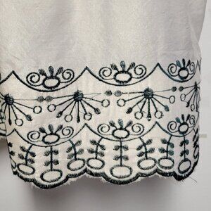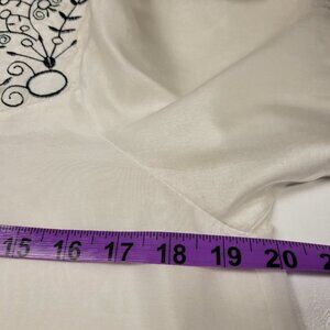 White Short Sleeve Blouse Top with Striking Applique on hemlines and necklines