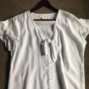 White Short Sleeved Tie Front Blouse