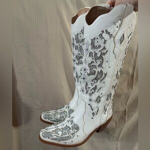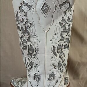 White & Silver Cowgirl Boots Rhinestone Sparkly Western Cowboy Boots Size 7.5