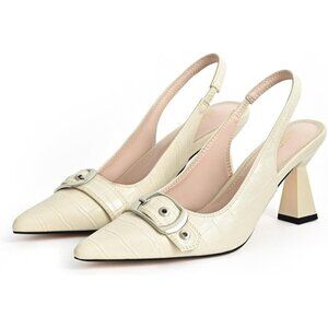 🆕 White Slingback Kitten Heels Women’s Pointed Toe Buckle Strap Dress Pumps