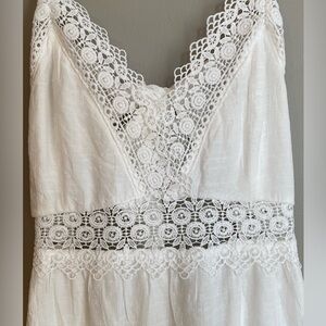 White Spring/Summer Dress with Lace Trim and Open Back Size US 6