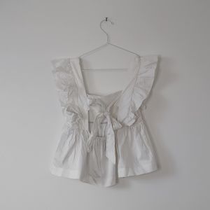 Square-neck Tank Top Open-Back with Bow. Frill on the straps and below the waist.