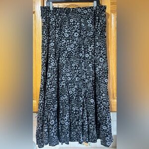 White Stag Floral Black and Gray Women's Rayon Long Skirt Plus Size 2X 18W/20W