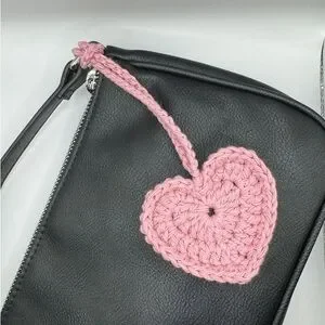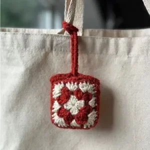 Crocheted red and white star charm with pocket . Perfect for adding a unique touch to your outfit.
