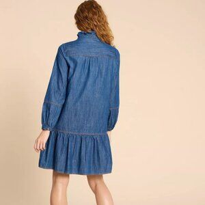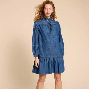 Introducing the Maisie Denim Dress by White Stuff – a stylish and comfortable piece perfect for day-to-night wear. Made from 100% cotton, this dress features a high neck, long sleeves, a relaxed fit, and a feminine touch with a charming ruffle detail. With a knee-length cut, it effortlessly blends comfort and style. Its easy-care, machine-washable design makes it practical and fashionable, embracing the denim trend with a delightful feminine flair.