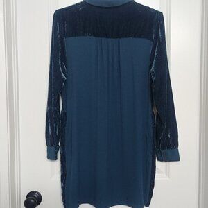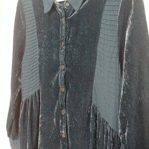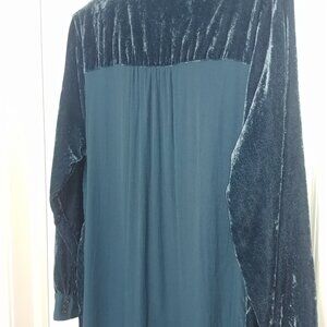 White Stuff UK dark teal velvet mini dress tunic button down viscose …