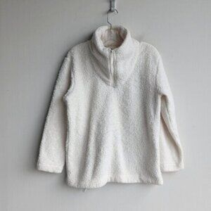 White Teddy Sherpa 1/4 zip pullover sweater