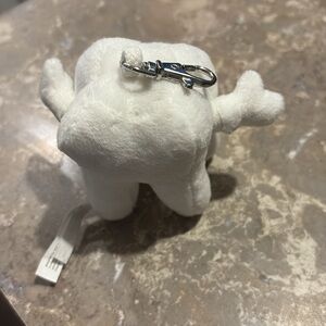 Cute white tooth plush keychain with a smiling face. Perfect for adding charm to your keys or bag.
