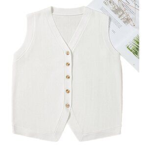 🤍 White V-Neck Buttoned Sweater Vest – Size M