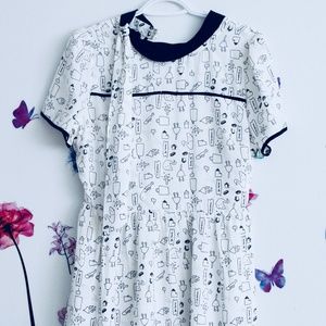 White Vintage Dress With Cartoons - (Size Small)